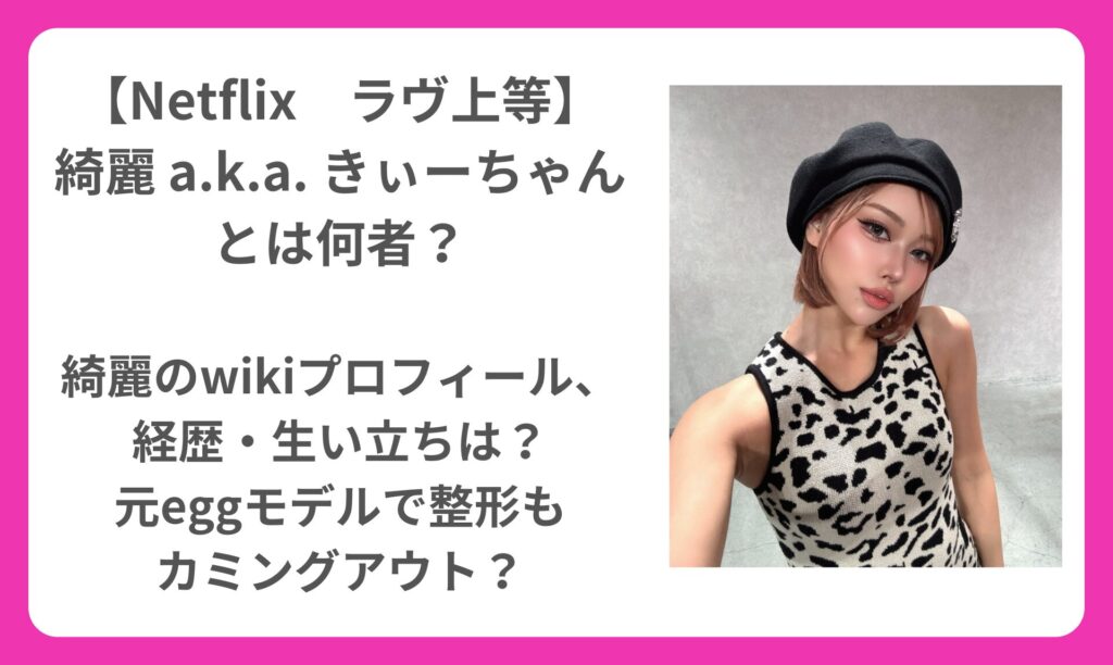 【Netflix ラヴ上等】綺麗 a.k.a. きぃーちゃんとは何者?|鈴木 綺麗のwikiプロフィール、経歴・生い立ち・仕事は?元eggモデルで整形もカミングアウト?