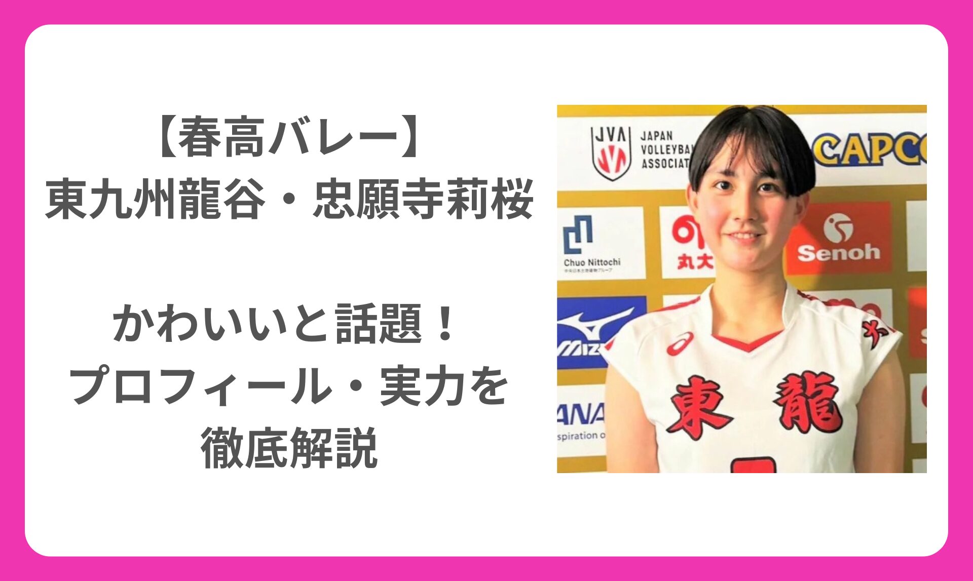 その中でも特に注目を集めているのが、東九州龍谷高校(大分)女子バレー部の忠願寺 莉桜(ちゅうがんじ りお)選手です。
